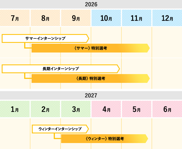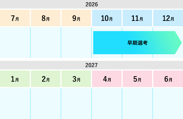 - ※2026年9月26日(金)15:00までにご登録いただいていた方が28年度卒早期選考の対象です。