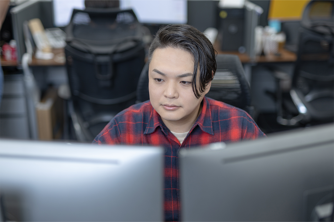 - 社内ネットワークの企画・設計から運用までを一貫して担当しています。ゲームアセットは大容量になるため、高速かつ安定した通信環境を整えることで、ゲーム開発スタッフが業務に集中し最高のパフォーマンスを発揮できるよう支えています。より良いものを目指して新技術や新製品、AI活用などにも積極的に提案してチャレンジしています。